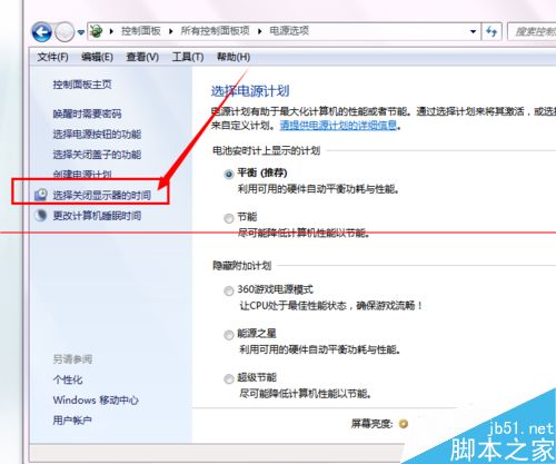 3、進(jìn)入電源管理界面以后,點(diǎn)擊界面最左側(cè)的“選擇關(guān)閉顯示器的時(shí)間”選項(xiàng),進(jìn)入該選項(xiàng)設(shè)置。
