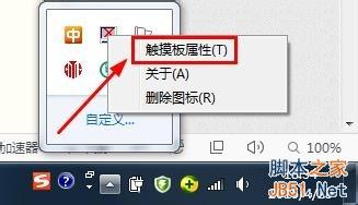出現(xiàn)以上的圖標(biāo),就表明此時這臺電腦的觸摸板是不能使用狀態(tài),接著我們右鍵點擊該圖標(biāo),在彈出的選項里選擇"觸摸板屬性",然后就會彈出一個大的窗口,下圖是筆者的戴爾筆記本窗口,其他型號的電腦可能會有差別
