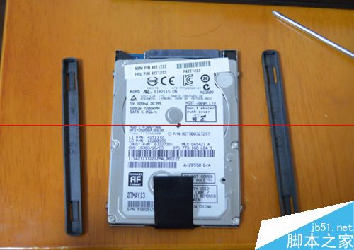 6、原硬盤拿出后如圖所示(兩側長條為橡皮護墊):
