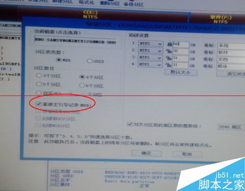 5、將系統(tǒng)磁盤全部格式化并重新分區(qū),在進(jìn)行分區(qū)操作時(shí)一定要選擇“重建MBR”此后在PE環(huán)境下完成系統(tǒng)的安裝