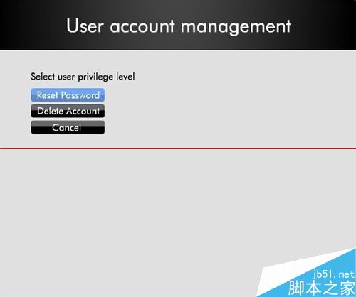4、當點擊創建的賬戶后,可以對創建的賬戶進行重置密碼(Reset Password),刪除賬戶(Delete Account)的操作。Cancel可取消反回上一界面。
