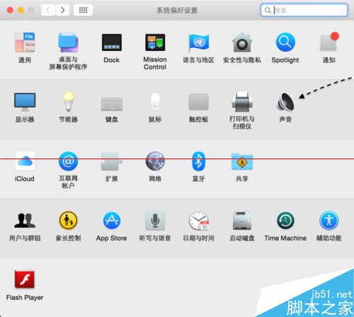 2、在系統(tǒng)的偏好設(shè)置窗口中,點(diǎn)擊打開(kāi)“聲音”圖標(biāo),如圖所示