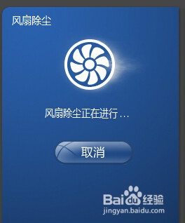 4、點擊“開始”,就變為“風扇除塵正在進行”,一般聽它自動轉,連響停三四次即可。
