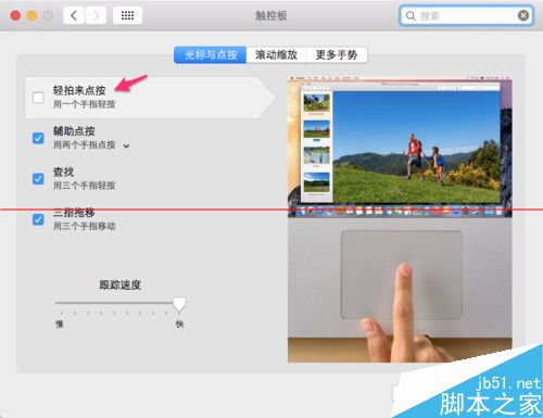 3、在輕拍來點按這一項目前面打勾。當然也可以順便選擇和學習一下其它的多手勢操作。