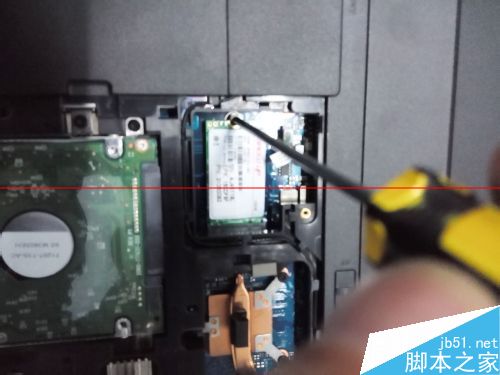 6、在固態(tài)硬盤尾部用螺絲固定,一般聯(lián)想的固態(tài)硬盤都有帶螺絲,如果沒有,請到售后站要一個即可,千萬不要用別的代替!