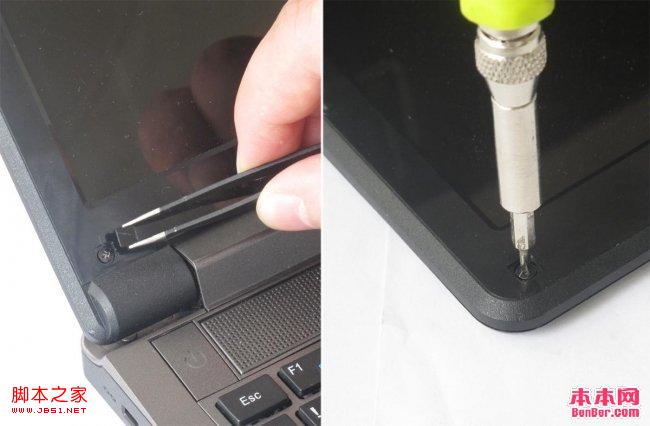 第一步:拆卸頂蓋邊框。根據(jù)頂蓋厚薄的不同,有些頂蓋的屏幕邊框沒(méi)有固定螺絲,有些會(huì)采用一些裝飾片或者減震橡膠墊擋住螺絲。用刀片等工具扣掉這些裝飾片,拆掉邊框四周的全部螺絲。然后用手扣住屏幕邊框內(nèi)側(cè)逐漸發(fā)力,依照頂端、兩側(cè)和底端的順利逐漸分離屏幕邊框。