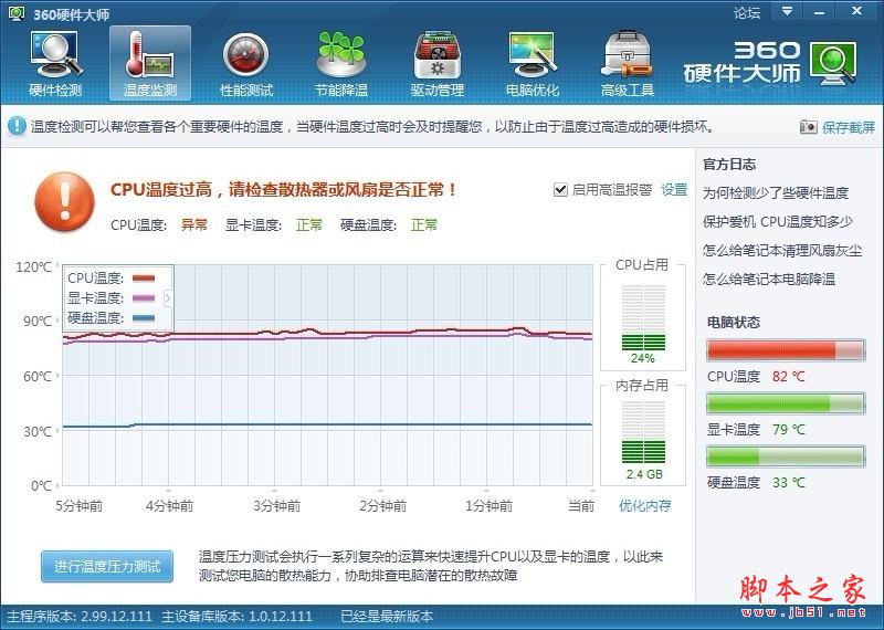 在待機問題有所降低 而滿載壓力下 問題變化不大 甚至沒有變化 可以看出限制DV6散熱的瓶頸是在散熱器大小和風量上了