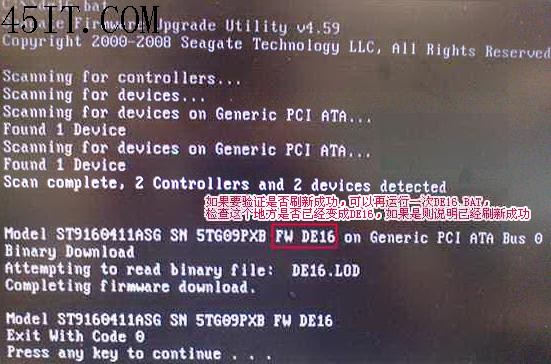 6.出現(xiàn)DOS命令符后,輸入DE16.BAT并回車,程序會自動運行,當提示Press any key to continue…說明已經(jīng)刷新成功