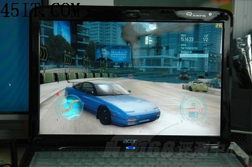 由于顯卡的局限性,在極品飛車12的游戲中,只能支持到1024x768的分辨率,且特效不能完全打開,因此游戲畫面有一定的變形和圖像邊緣有較大的鋸齒。 如今的筆記本平臺相比起兩三年前左右已經有了相當大的發展,隨著Intel酷睿架構的成熟推行以及ATI獨立顯卡在移動平臺的進一步普及,筆記本的運行效率確實翻了幾翻,也確實可以滿足部分用戶的娛樂需求,但相比起桌面平臺的臺式機仍然存在一定的差距。 對于一些希望選擇筆記本,但實際卻又并不是很需要筆記本所帶來便攜性的用戶,像學生、家庭這些用戶來說,選擇臺式機方案肯定是更為實用的,除了性能的差異外,臺式機所帶來的視聽覺感受可為用戶帶來更舒適的享受,用戶可根據實際的需求配置更好的像顯示器、音箱、鍵盤鼠標等外設硬件。