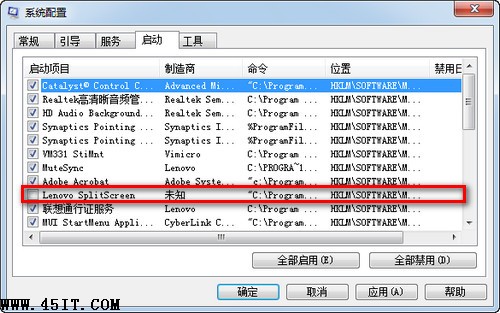 用戶來(lái)電咨詢ideapad Y460出廠預(yù)裝軟件Lenovo SplitScreen(智能分屏)如何取消開(kāi)機(jī)自動(dòng)啟動(dòng)