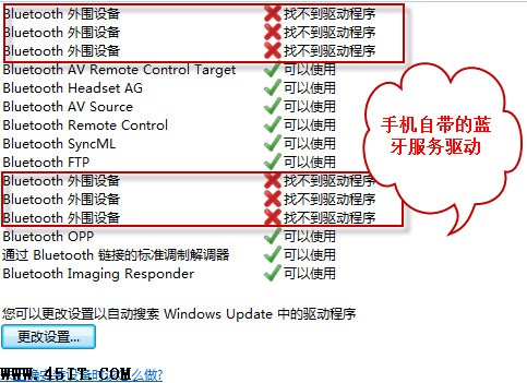 當(dāng)手機(jī)和筆記本配對成功后會(huì)彈出一個(gè)手機(jī)藍(lán)牙服務(wù)驅(qū)動(dòng)安裝情況的對話框。如下圖,但部分手機(jī)服務(wù)及驅(qū)動(dòng)是系統(tǒng)無法識(shí)別的。