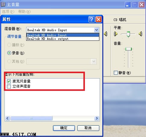 4、勾選麥克風音量,點擊確定