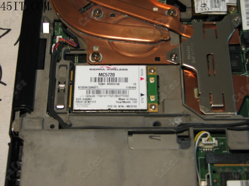 這個就是WWAN的卡槽了,可以看到Cafes的本本里是沒有預留天線的,“清爽”得很啊。