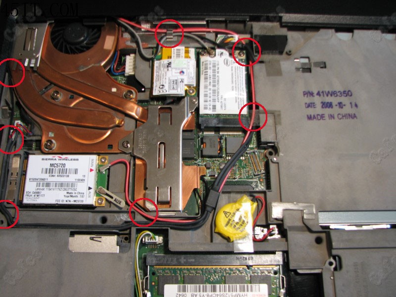 鍵盤下面個個都是發熱大戶啊,CUP、GPU、WiFi卡、藍牙貓,現在我們還要多裝一塊WWAN卡,還好T60P的散熱還不算差,呵呵。