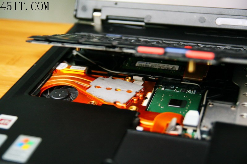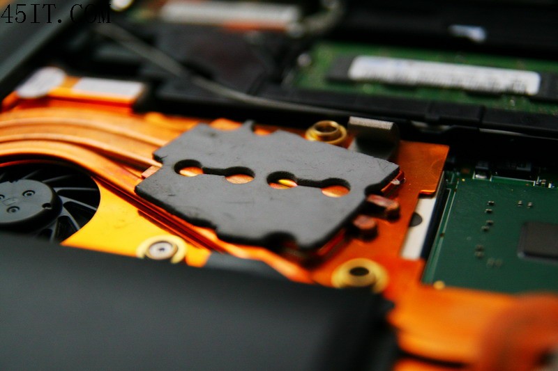 可以看到散熱器上的那塊導熱墊,確實已經老化,硬邦邦的 (為什么原裝的導熱墊要開孔,開槽,下文將會給出答案,這不是為了節省材料)