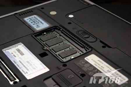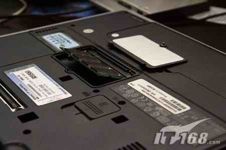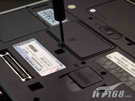 這類型的筆記本升級內存最為簡單,在筆記本底部有一蓋板,下面就是內存插槽的位置,這時你要做的就是,用螺絲刀擰開蓋板,如上圖
