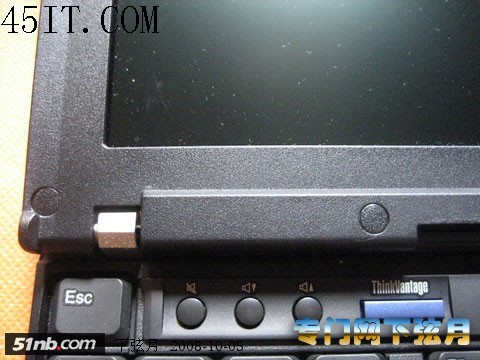 5: 頂蓋 這里就要說說了, A殼的涂料似乎沒有以前好了,我是18號拿到的機器,一直是使用附送的典雅型雙肩包,到28號來看的時候,頂蓋有thinkpda 字樣的那個角,已經有一點摩出光亮了,雖然說只有和小的一點點,但拿到機器才10天啊。更厲害的時候,當天下午一個朋友拿了臺HK的學生機X200,晚上一起吃飯的時候,拿拿他的看,居然也有了,他還是裝在內膽包里面的。唉暈呀!