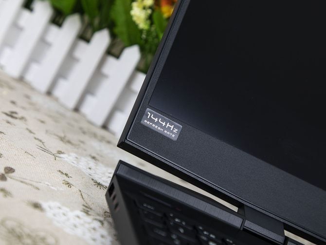 屏幕下方的144Hz標識,支持G-Sync技術,顯示更平順