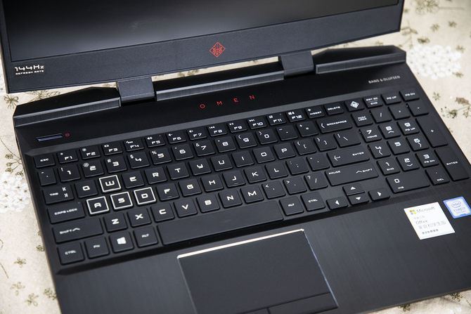惠普暗影精靈4 Pro游戲本采用了26鍵無沖全鍵盤設計。常用的WSAD按鍵被強化設計,按壓手感恰到好處,兼顧了一流的靜音特性。不過RTX2060獨顯的版本只支持雙色鍵盤背光,只有RTX2070 Max-Q的版本支持4區RGB背光顯示。夜晚不僅可以照亮鍵盤,玩家還可以根據自己的喜好調節顏色,營造屬于自己的電競氛圍。