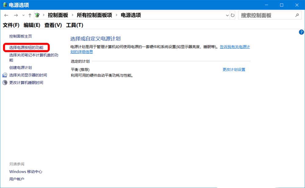 2、在電源選項窗口中,我們點擊窗口左側的【選擇電源按紐的功能】;