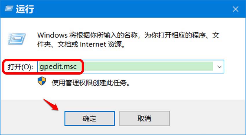 1、在【運行】對話框中輸入:pedit.msc命令,點擊確定或按下鍵盤上的回車鍵,打開本地組策略窗口;