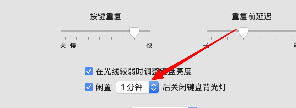 7、我們設置為1分鐘,這樣當我們不使用鍵盤,1分鐘后就會自動關閉鍵盤燈了。