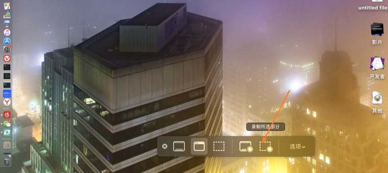 5、至于第四個,那么它提示是錄制整個屏幕,點擊后可以錄制整個屏幕,第五個則是錄制所選部分,點擊后,可以選擇你要錄制的部分。