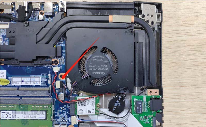 5、把風扇插主板上面的接口拔掉,要小心容易斷