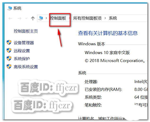 3、在彈出的屬性窗口中,鼠標點選控制面板。