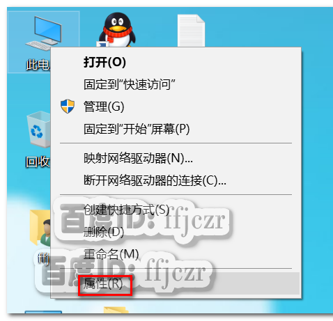 2、鼠標在“我的電腦”圖標上點右鍵選屬性。