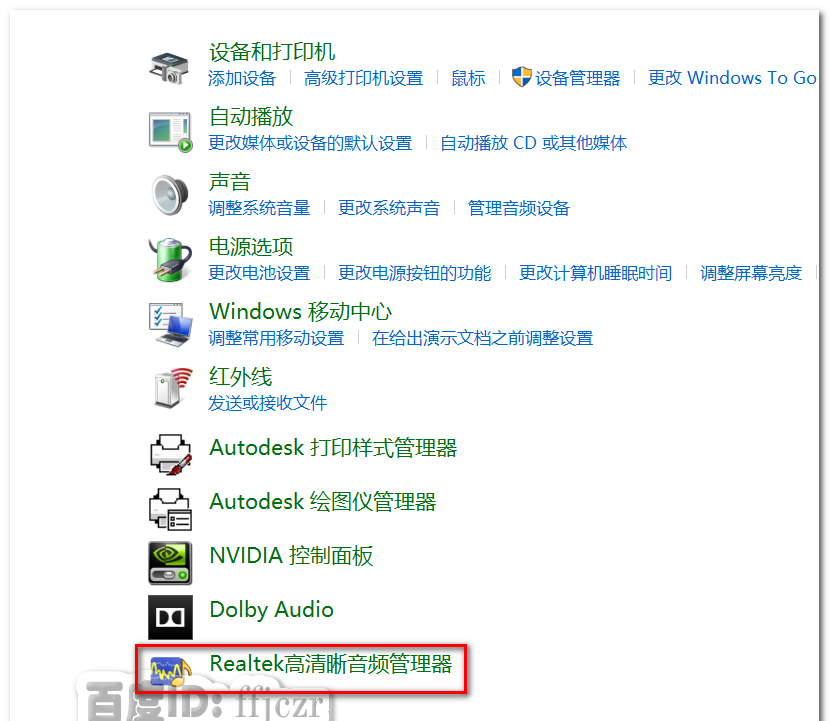 5、在彈出的列表中,選擇Realtek高清晰音頻管理器。