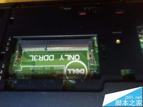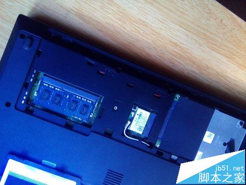4、下圖為打開后蓋的樣子。首先把兩邊的卡扣輕輕地往兩邊撥開,內存條就會自己彈起來,然后順著30度角輕輕地把內存條拔出。