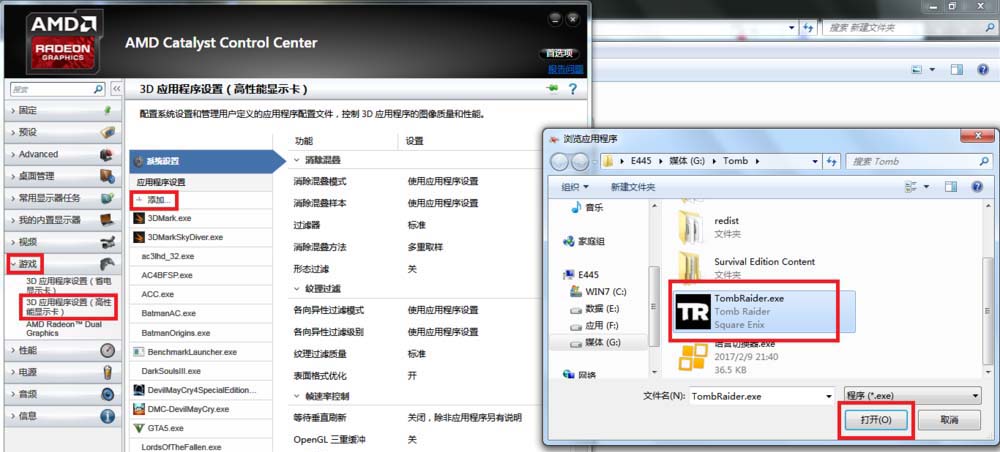 8、為游戲配置雙卡交火配置文件,大多數游戲不使用配置文件是無法交火的(即默認模式下無法交火)