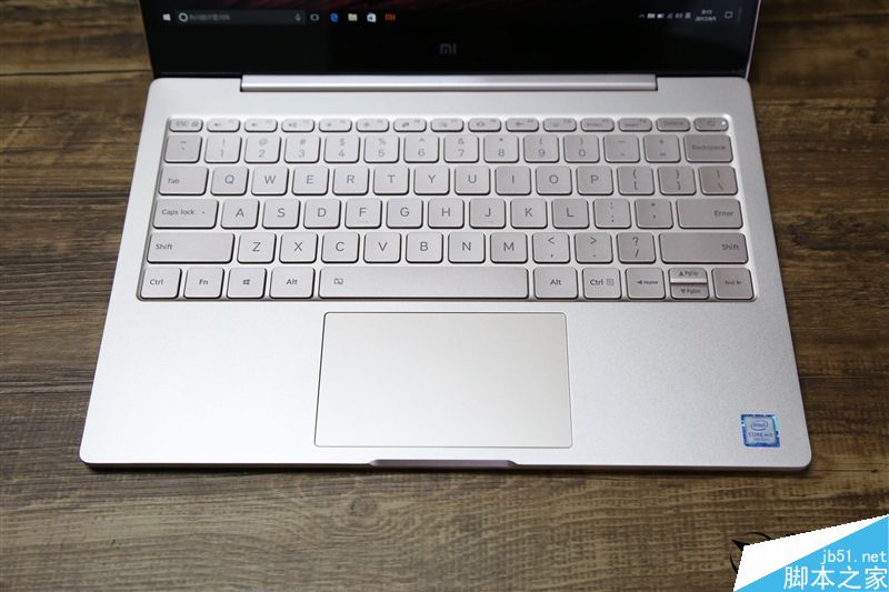 ↑↑↑小米筆記本的全尺寸鍵盤,1.3毫米鍵程稍短,回彈手感適中,打擊感較軟,不過畢竟超薄本,可以接受