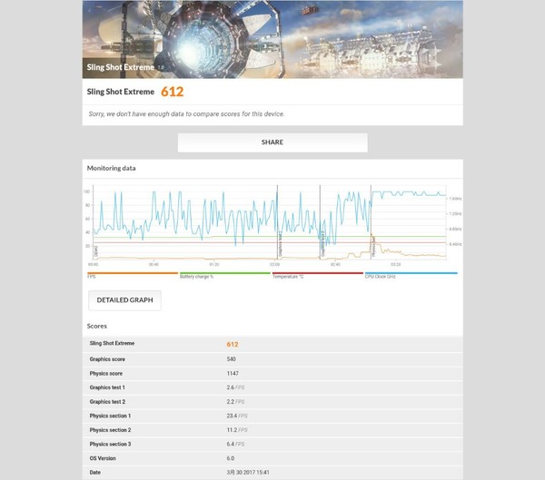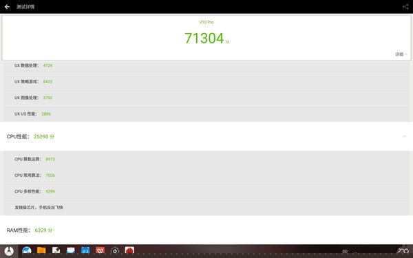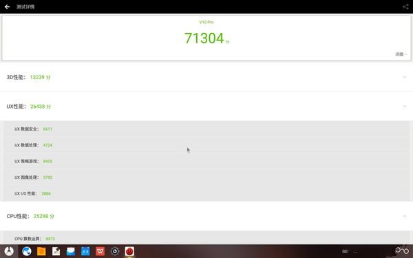 于是興奮的筆者決定跑下跑分軟件,于是得出了這樣的結(jié)果,3dmark跑分612分;安兔兔跑分71304分,3d性能13239分,UX性能26438分,cpu性能25298分,RAM性能:6329分。