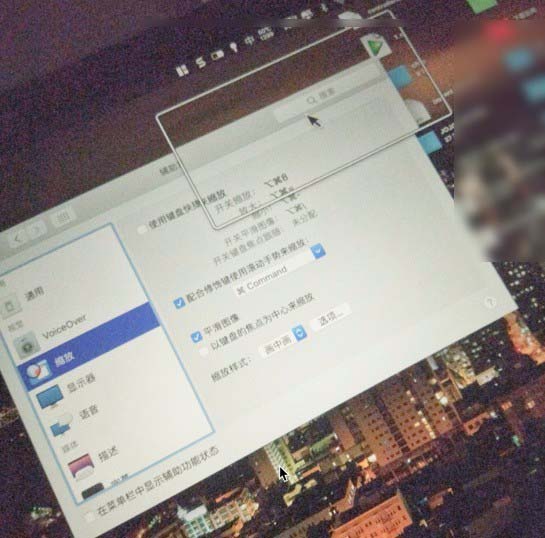 5、接著在需要放大的屏幕的一塊,先將鼠標光標放到對應的位置,然后按鍵盤上面的cmmand+=或者cmmand+-,接著就會縮放位置。第二種是按住cmmand,然后雙指在觸控板上面上滑或者下滑,對應相對的放大或者縮小。