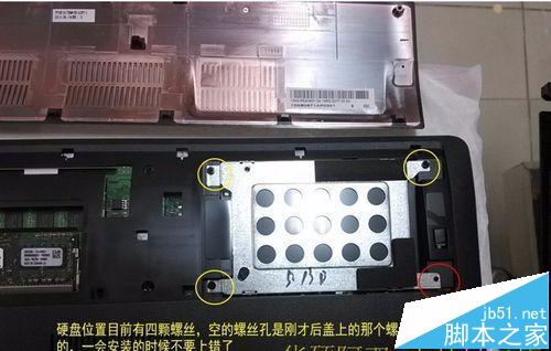 3、就是拆硬盤 硬盤上有三顆釘子 卸掉以后硬盤平移往左邊就下來了 然后把硬盤拿下來!拿下來以后 底殼只要見到的螺絲全部擰下來。