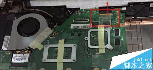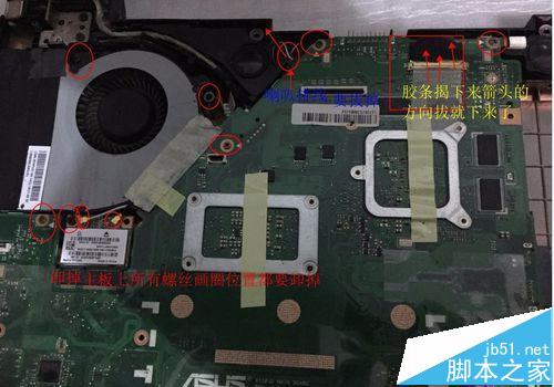 6、卸掉主板上所有的螺絲包括風扇上的 風扇和主板是連在一起的 所以螺絲要一并卸掉!無線網卡天線要拔掉 還有筆記本喇叭排線!
