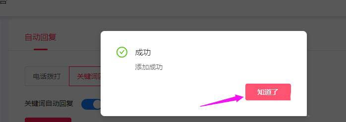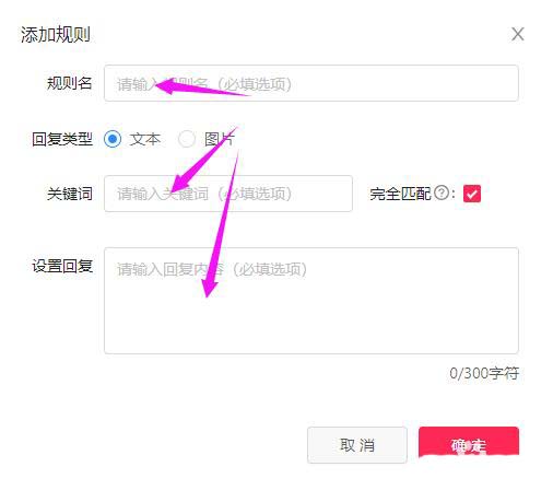 輸入“規則名、關鍵詞、設置回復”,點擊“確定”