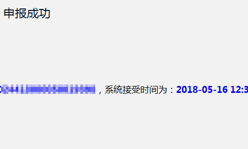 6、申報之后,頁面會彈出申報成功的提示,并且會彈出系統接受的時間。