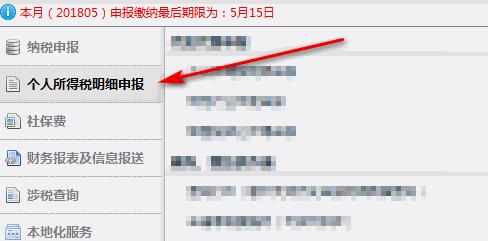5、登錄之后,點擊<個人所得稅明細申報>。打開申報表之后,填寫相關的信息,以及申報明細,最后進行申報。