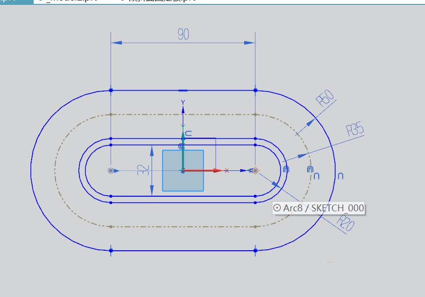 1、新建建模文件,因為有多個拉伸體不能一次拉伸完成,以XY平面為草繪平面,進入草繪模式。