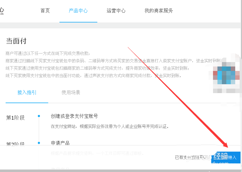 1、以個體工商戶申請當面付為例,百度搜索支付寶商家中心