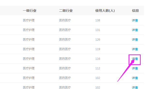 4、點擊要添加的那條模板消息所對應的【詳情】。