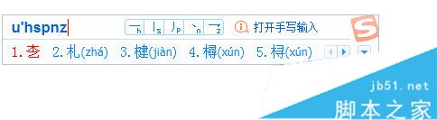 2、我們用搜狗輸入法u模式的筆畫來打出:札