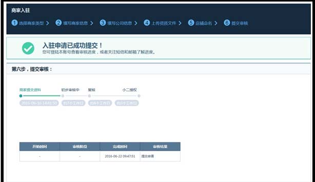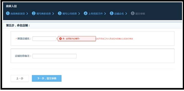 7、備注為備用名,如果店鋪名不合格優(yōu)先參考,工作人員在規(guī)定時(shí)間內(nèi)給到審核結(jié)果;后續(xù)可用申請(qǐng)賬號(hào)登陸招商入駐頁(yè)面關(guān)注進(jìn)展