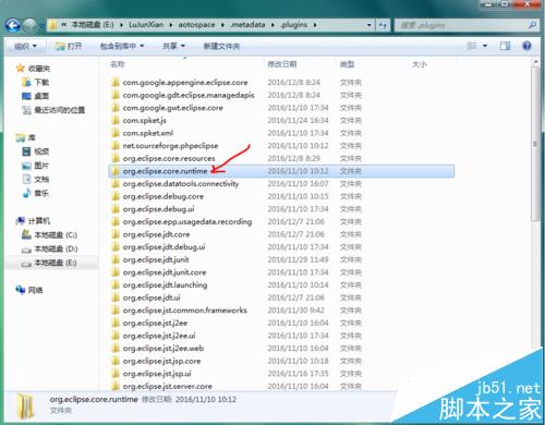 3、選擇org.eclipse.core.runtime文件夾,進入.setting文件夾