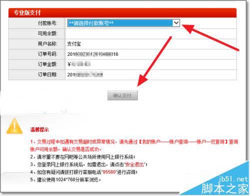 5、選擇支付銀行賬戶(若有多個賬戶的情況下)。