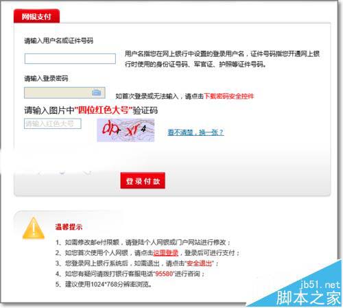 4、登錄郵政儲蓄銀行網上銀行支付界面,進行支付。這里要輸入非本人的銀行卡網上銀行的密碼。