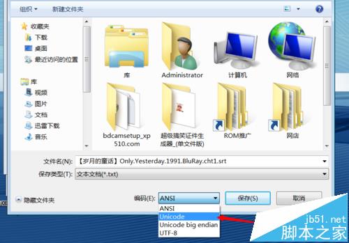 4、編碼方式選擇unicode--單擊確定